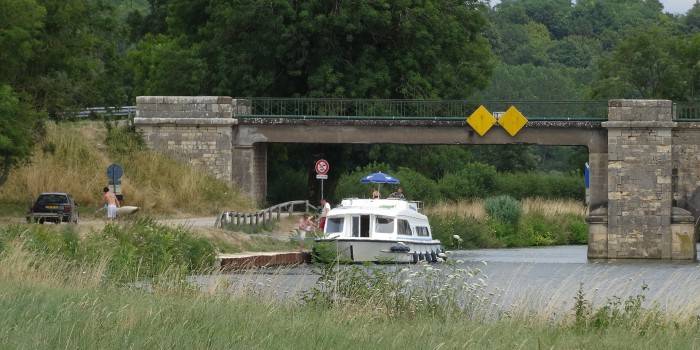 Le ciel se couvre un peu et il y a un petit vent sympa qui fait du bien. Nous avons trouvé un petit coin au calme au bord de la Saône près du pont de Chantes. Nous espérons trouver un petit coin pour pouvoir nous baigner dans la rivière.